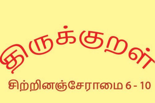 போன பகுதியில் திருக்குறளின் சிற்றினஞ்சேராமை அதிகாரத்திலிருந்து முதல் ஐந்து குறள்களைப் பாரத்தோம். இதில் சிற்றினம் இதன் பொருள் நல்ல குணங்கள் இல்லாமல் தீய வழக்கங்கள் உடையவர்களைக் குறிக்கும். நாம் யாரிடம் நட்பாக இருக்கிறோமோ அவரின் குணநலன்கள் நம்முடைய எண்ணங்களைப் பாதிக்கும். சிலரின் நட்பு துன்பங்களைத் தரும். இந்த அதிகாரம் தீய குணங்களை உடைய சிற்றின மக்களுடன் சேராமல் பாதுகாத்துக் கொள்ள வேண்டும் என்று கூறுகிறது.